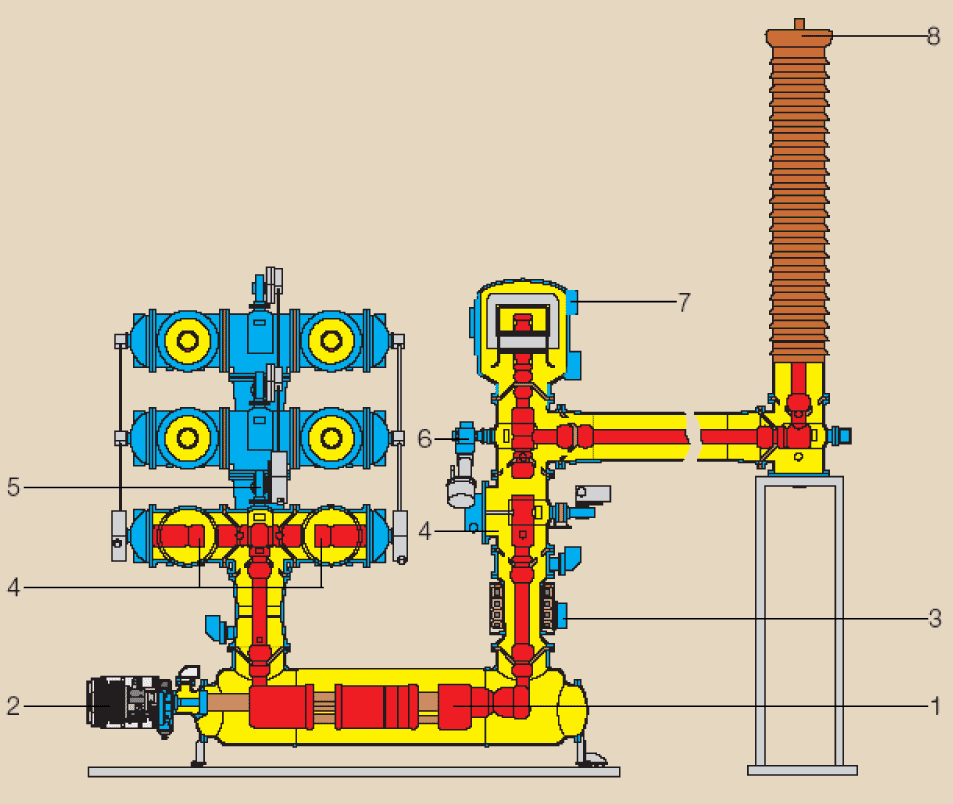 - Конструкция КРУЭ включает разъединители отдельных шин в изолированных газовых отсеках для основной и резервной токоведущих шин